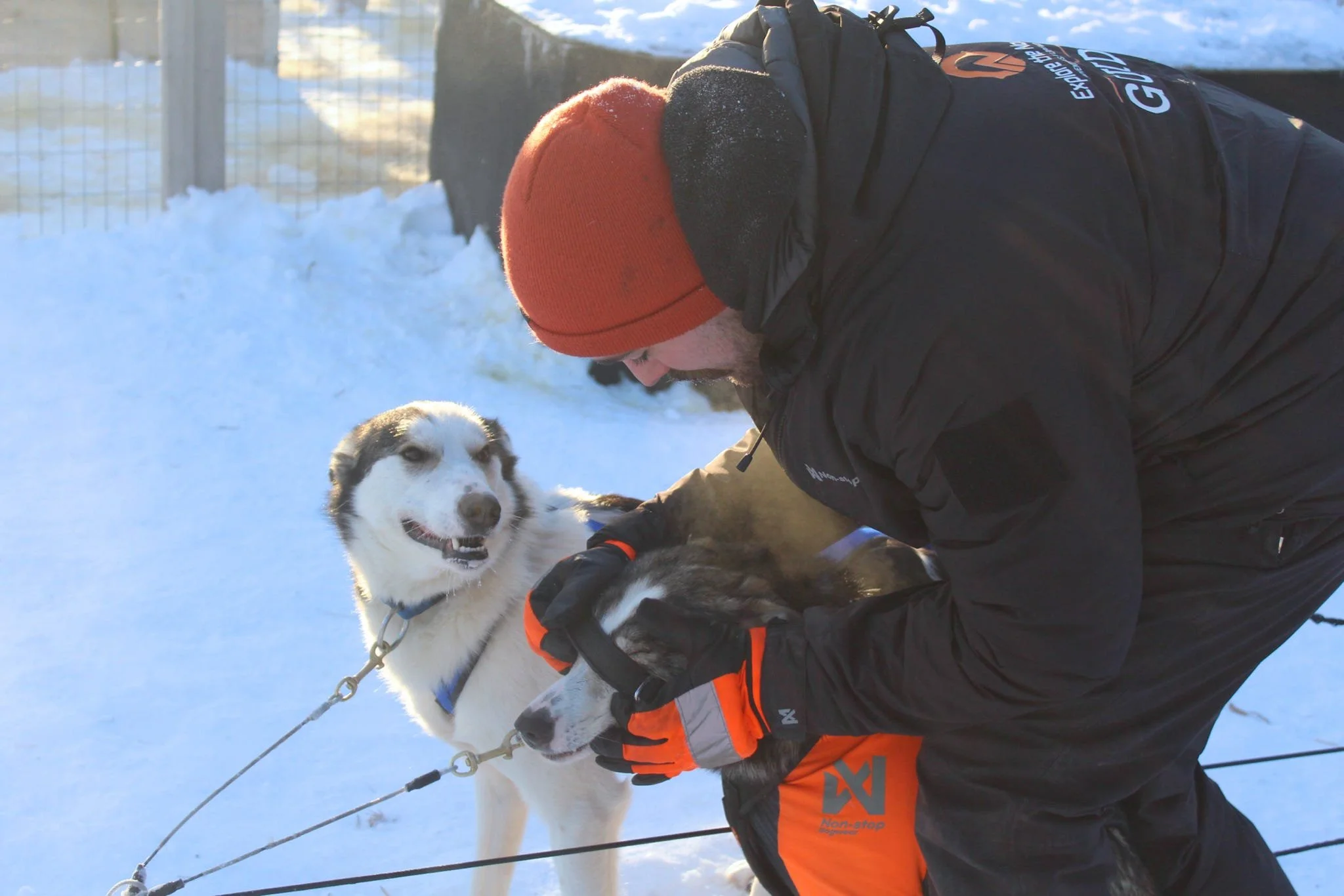 It’s a long process where starts from the day the puppies are able to see properly. They see daily how their neighbors go for training runs and tours. See how happy they are and how it fulfills them. Then when the time comes, around 6 to 8 months old, we will practice to be on the line and without guests and a small team we will go just few meters to show how it feels.